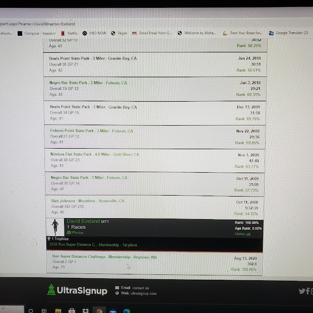 I pIcked up the piano again during the pandemic and thanks to motivation from coach Andrew Snow greatly upped the running volume and quality. From 2020 through 2024 ran 10,359 miles which averages out to over 40 miles a week. April 2020 took part in a mileage accumulation event during which ran and walked 229 miles over 19 days and was second place out of 94 particiants, mostly marines. November 2000 did a month long accumulation event during which ran 252 miles and walked an additional 50. Got a ribbon for first place age group and was second out of 62 overall. Did five pandemic virtual marathons, two that covered 50K, and an in person 5k with and son in laws Ray and Albert. First mile was 13 minutes second mile plus .10 took eleven and final mile when the guys told me to take the lead was 7:55. First place for age group. The pandemic mileage was boosted by one 52 period during which ran at least 2650 miles. Averaged 10 and a half running hours per week during that stretch. I consider it my best running achievement.